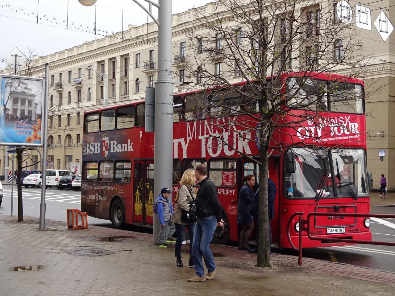 訪問ビザ発給の厳しさからして旅行者を拒む気満々のベラルーシ、外国人には相当アウェイな雰囲気なんじゃないかと心配していましたが、このバスを見て安心しました。少なくとも、観光客が来ることを想定している。 -