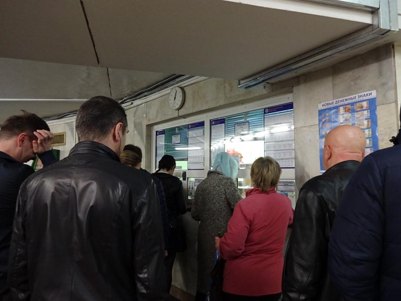何はともあれ両替。何故か皆さん、両替所ブースの閉まった扉の前で行列を作っています。ソビエト名物の行列?両替所開いてないの?