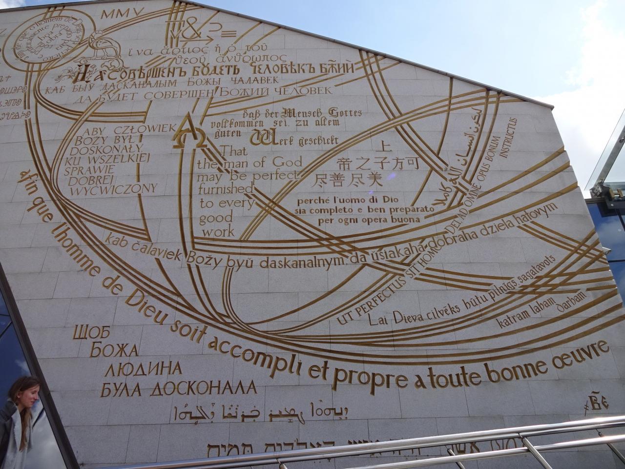駅舎の地下に荷物預り所があるとのことでしたが、線路から見たカウナス駅と同じくらいの大きさの駅舎(上の写真、列車の先の白い四角い建物)にはチケットカウンターがあるだけで、階段がどこにもない。あれーおかしいな…ちなみにその駅舎のすぐ前には、地下鉄駅なのか劇場なのかよく分からない建物がありました。