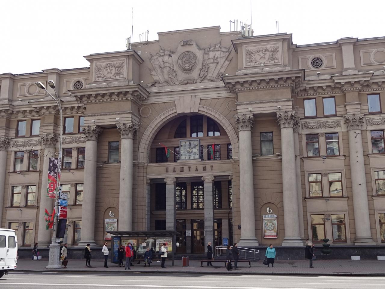 窓口によっては早く閉まるようですが、切手の窓口は23時まで開いているようです。気兼ねなく使えるようになったスマホで歩き方のロシア語のページを開き、「マールカ(切手)、イポーニユ(日本)、アトクルィートカ(ポストカード)」を駆使して意思が伝わりました。窓口のおばちゃんとその単語+身振り手振りで購入を成し遂げ、ジャクィとお礼を言ったら嬉しそうに笑ってくれました。ロシア語よりベラルーシ語を覚えて良かった!