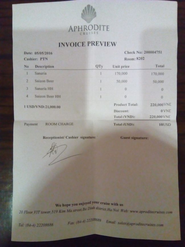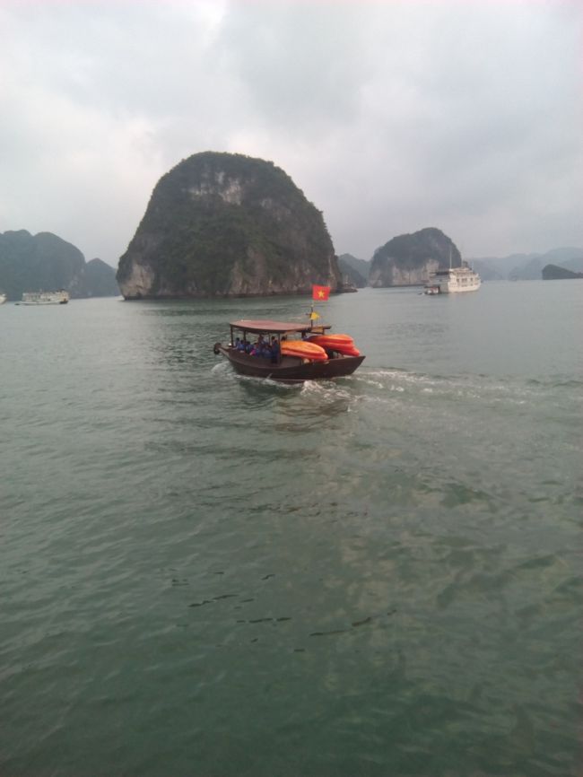 世界遺産のハロン湾、日帰りでは体力的にキツイと思い、クルーズ船で安い方の1泊2日食事付¥38,000/室にて、予約しました。カヤックは別料金、アルコールも別料金です。プチ贅沢クルーズでした。