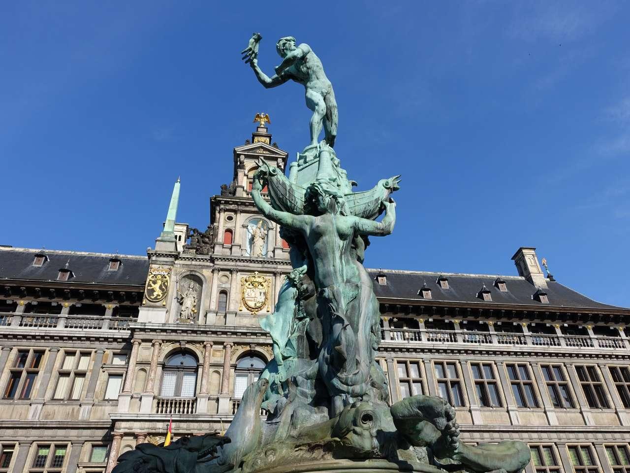 オランダ語で手“ant”を投げた”werpen”のでアントウェルペンになったという説がありますが、これは16世紀に作られたお話らしい。 -