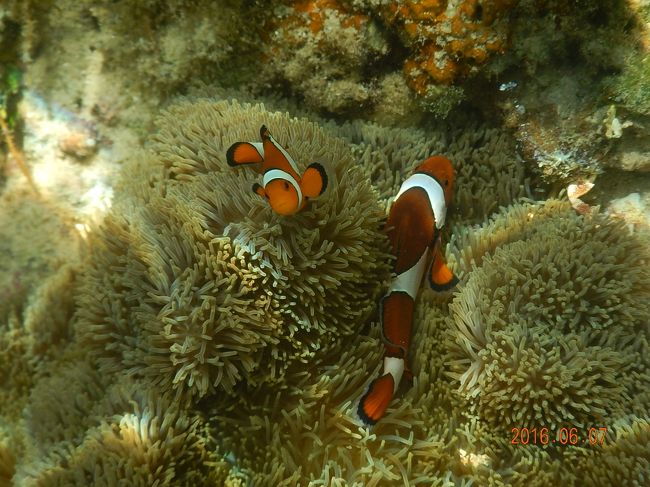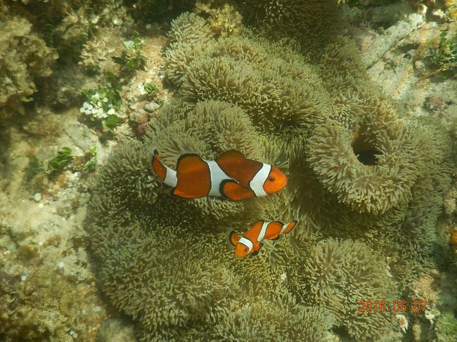 よ〜く見るとイソギンチャクの中にカクレクマノミの姿が見えます。