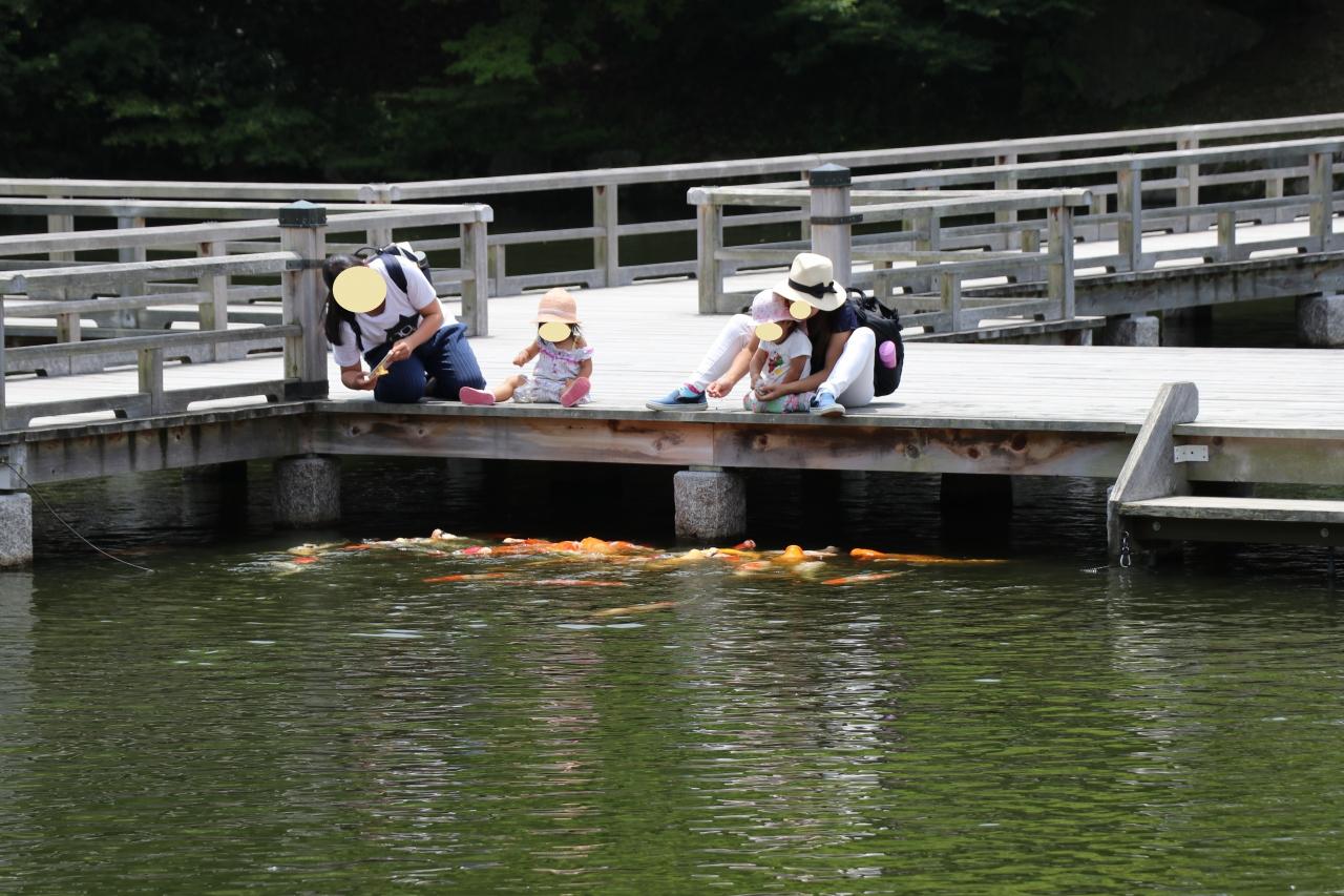 三景園の鯉は相当お腹を空かせていたようで、気持ち悪いほど集まってきました〜。