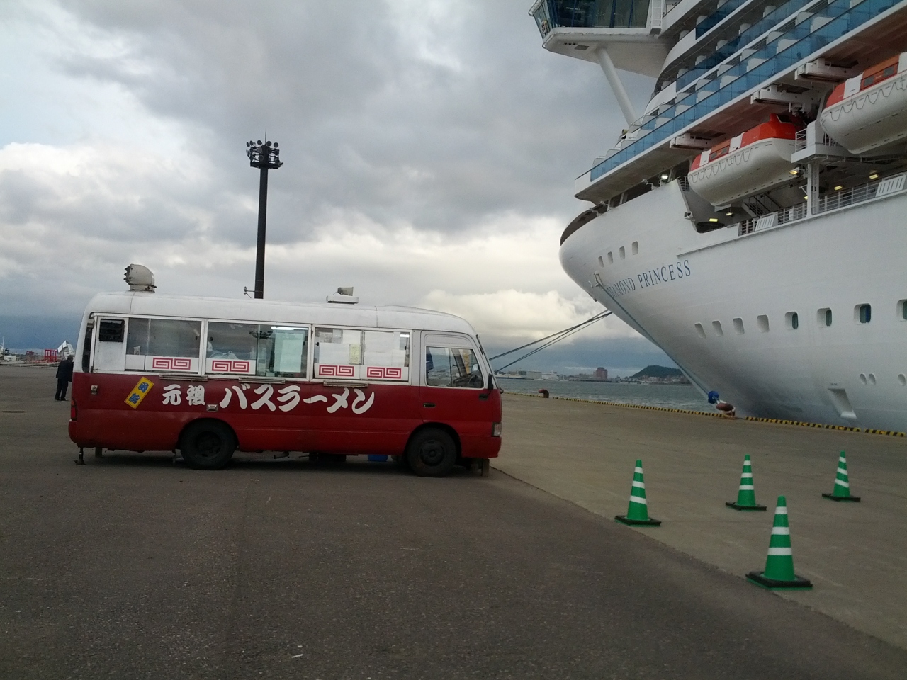 なんと、バスを使ったラーメン屋が船の傍で営業しているではないか。