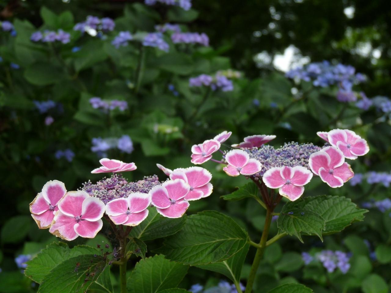 白い縁取りの赤いガクアジサイも珍しいので撮っておきました。
