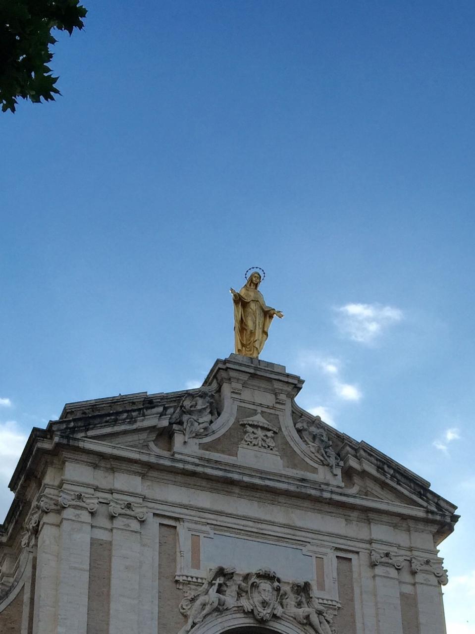 ファザード上部に金色に輝くマリア像。