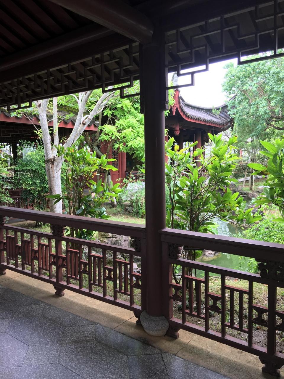 木々や植物や小さな彫刻なども興味しんしん、庭園建築からそんなに年月も経ていないのに、どこかもう古い時代に戻ったかのように、ここが沖縄であることも忘れてしまいそうな雰囲気の中国式庭園。