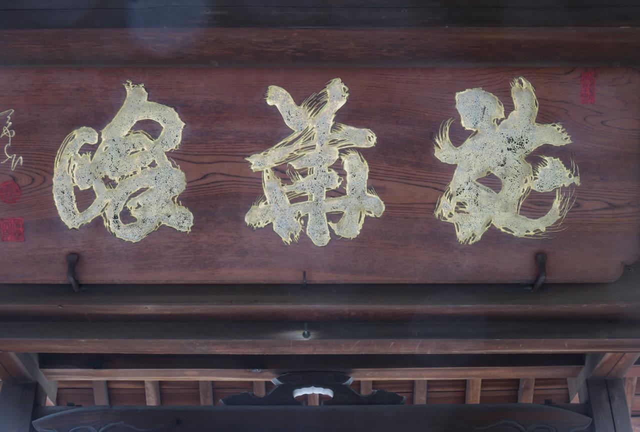 力強い三文字だけが揮毫された山門の扁額ですが、一番右の『花』らしい文字以外は読み解けませんでした。強いて読むなら、左端の文字は『喰』、中央の文字が『甫』でしょうか、右から読んでも、左から読んでも意味が通じません。