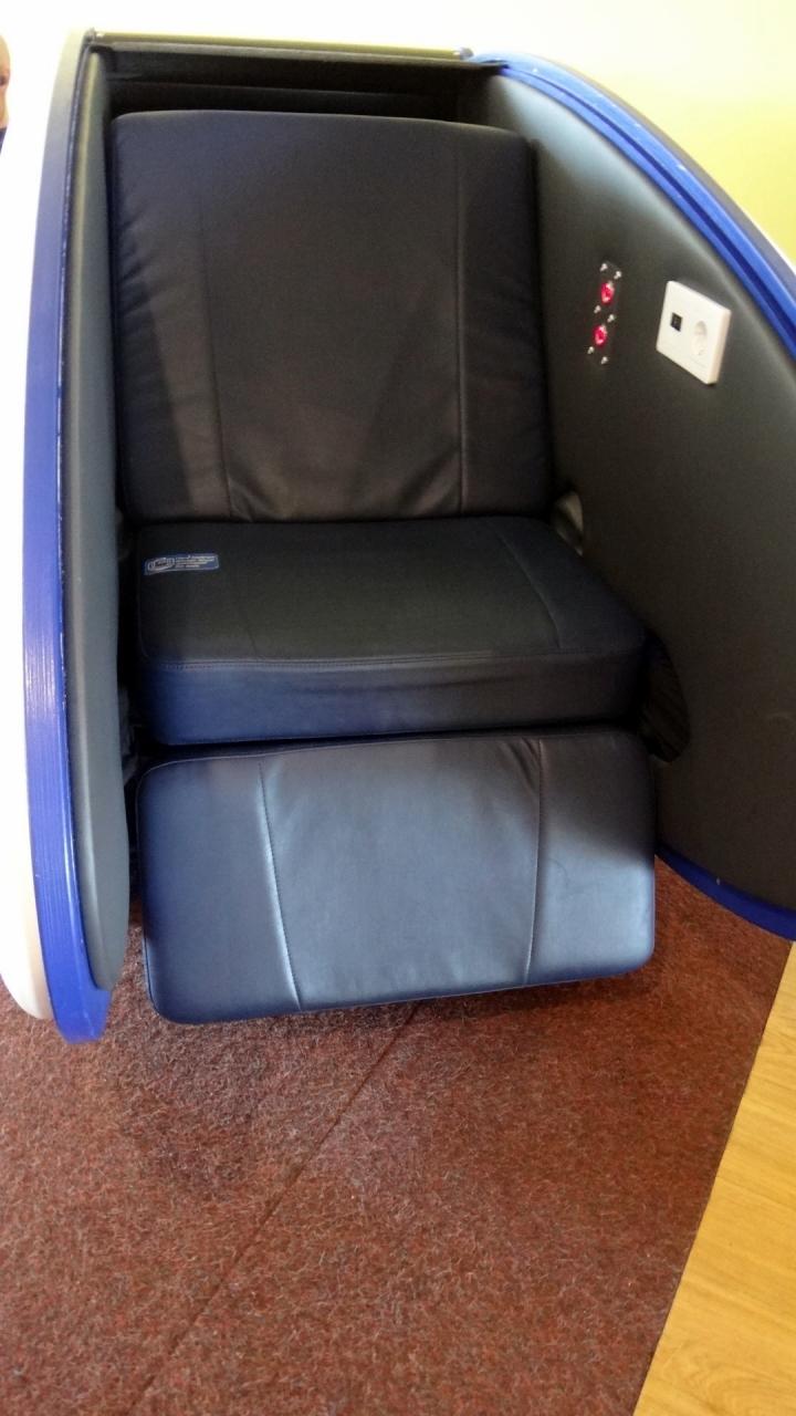 これは仮眠のためのまゆのような椅子で、リクライニングして、蓋を閉めてしまえば、個室空間になるわけです。