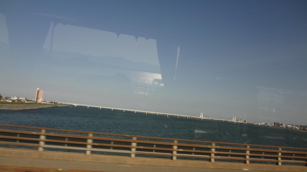 窓から、由布岳の北側、佐多半島の長い海岸線が見渡せました。