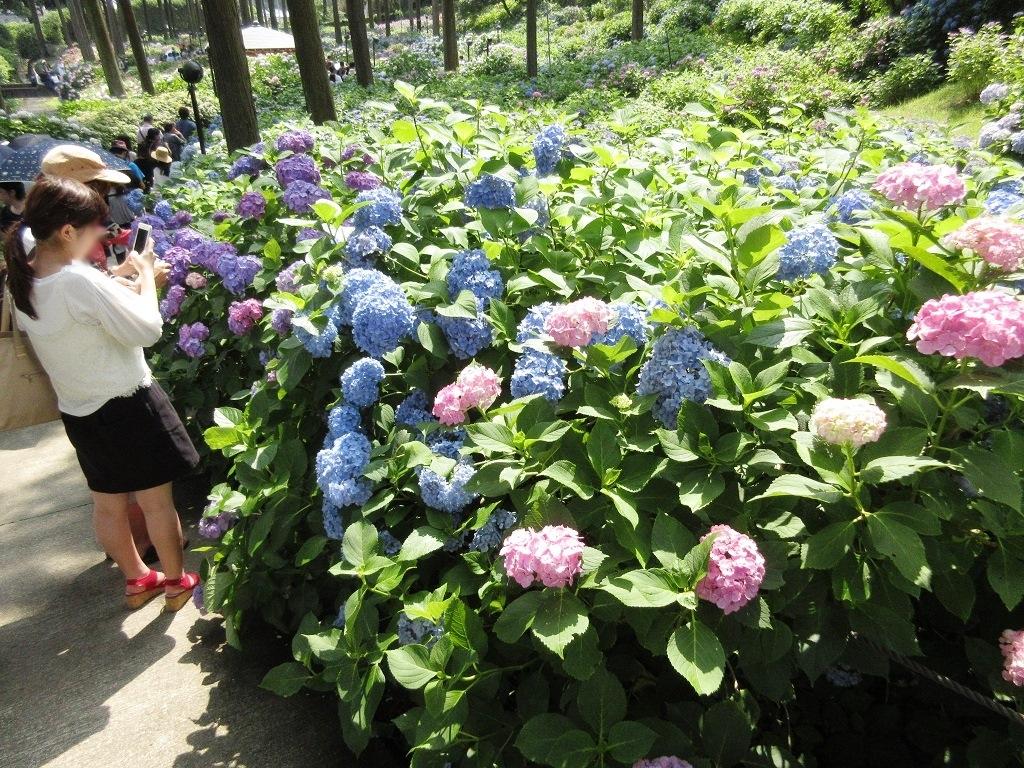 浴衣姿のお姉さんに続いて アジサイ庭園へ -