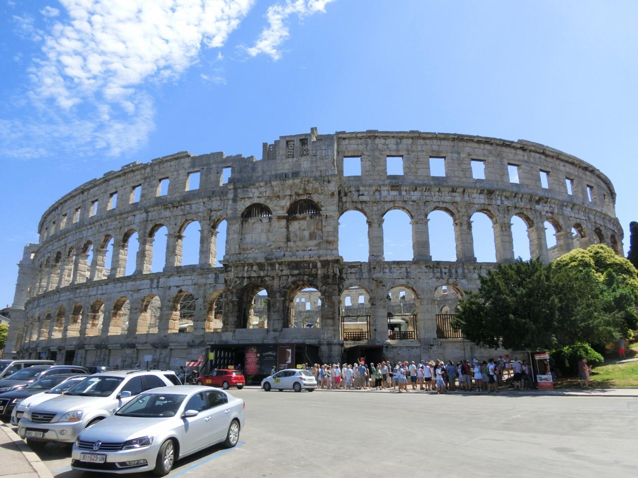 海沿いの一般道路を走って、プーラのローマ時代の円形劇場に11時頃到着。円形劇場はいくつも見てきているので、大きいな〜!と感じただけ。 -