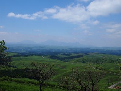 遠くにうっすら見えるのは阿蘇五岳。