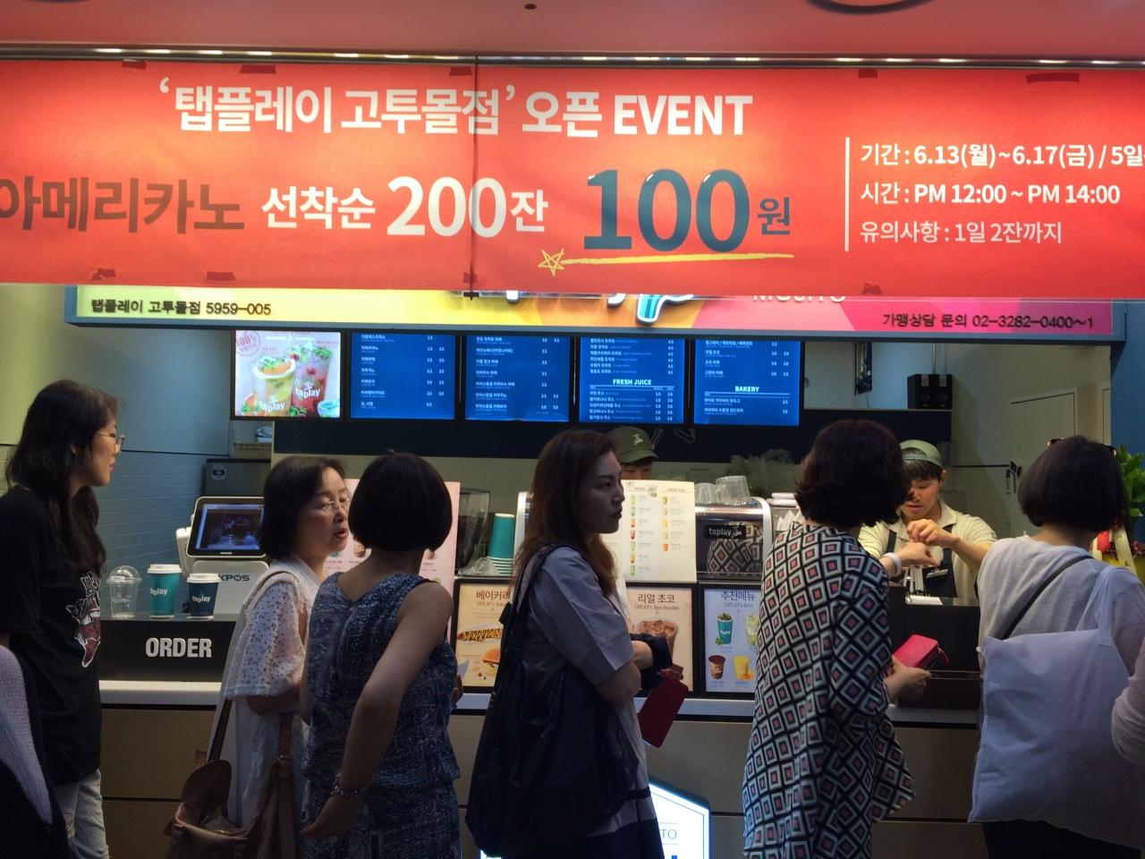 この時ちょうどイベントをやっていて、アイスアメリカーノが1杯100ウォンだった!即2人で並び購入〜