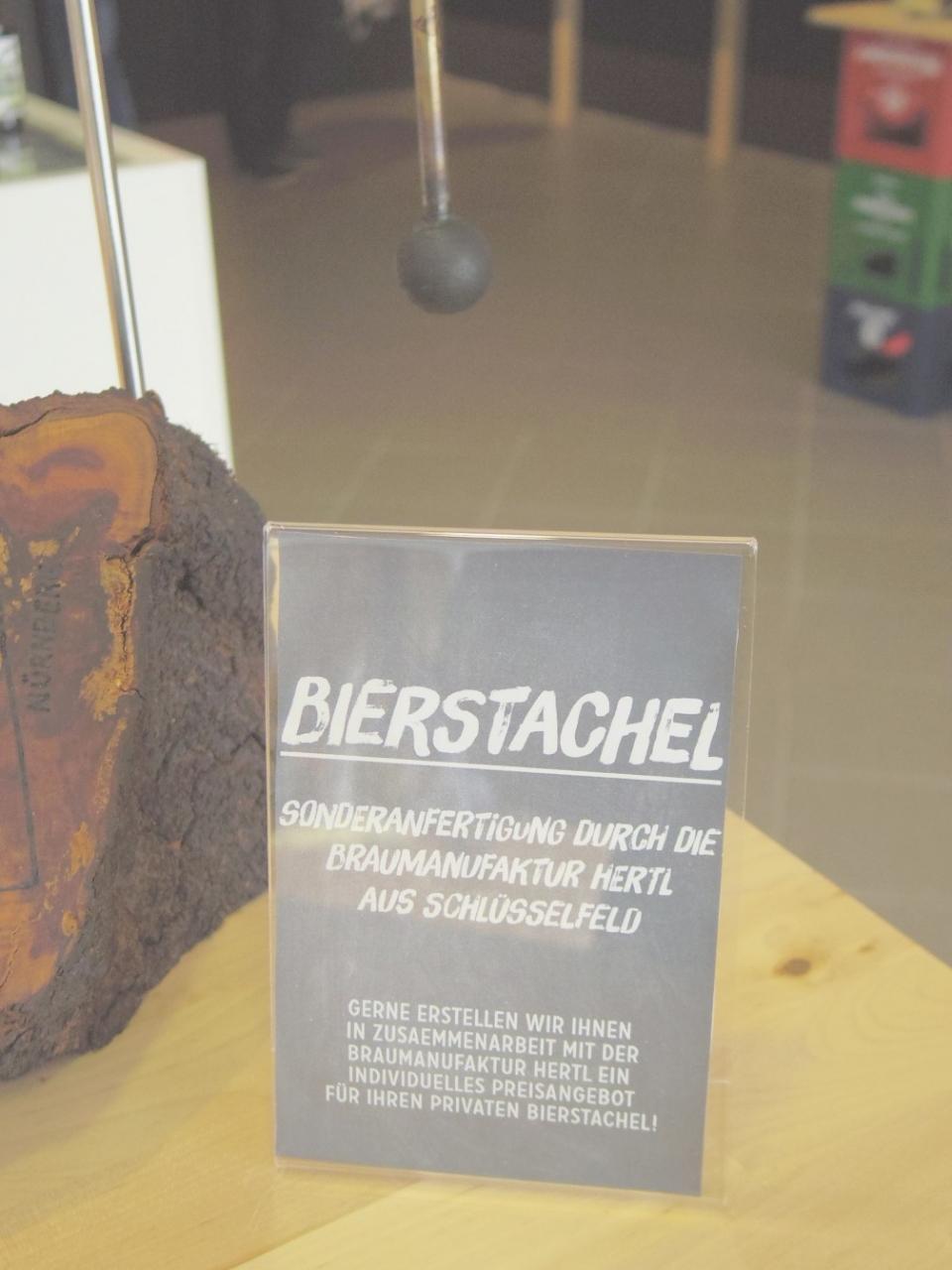 ビールの泡を加熱する特別な鉄棒”Bierstachel(ビアスタッフェル)”が展示されている。ビールをグラスに注いだあと、泡を加熱してカラメリゼするのだ。鉄球に焦げがこびりついている。