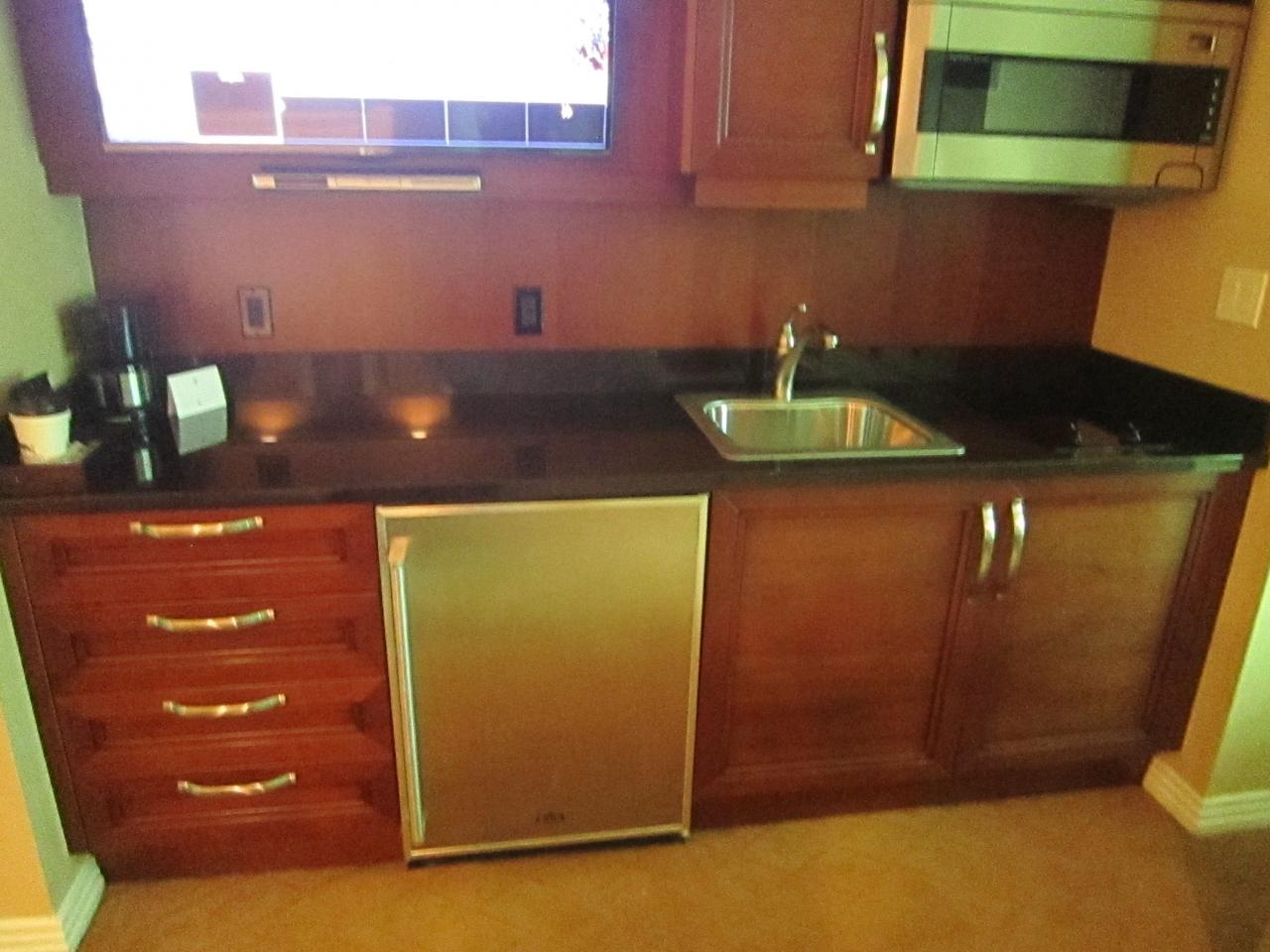 ちょっとした料理もできるように、流しや電子レンジも備えられていました。