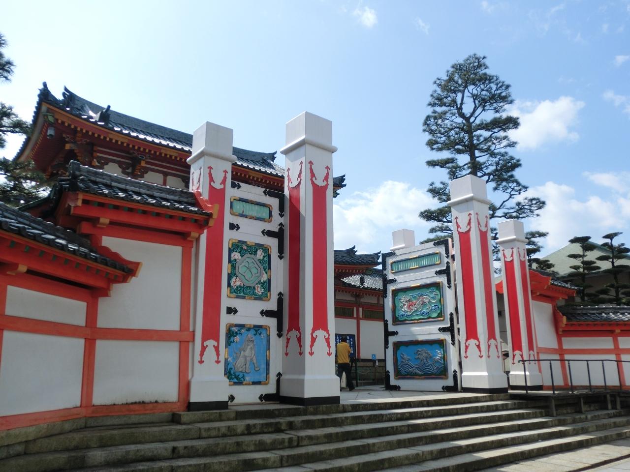 御所の門は素木造であるのに対し、こちらは極彩色の門です。鋼鉄13トンを用いたもの。 -