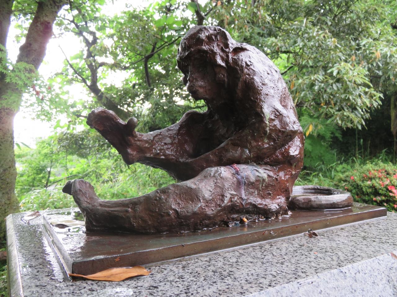 本丸跡は芝生と美術品の展示城のようになっています。ますますお城らしくありませんが、のどかな公園でこれはこれでいいです。 -