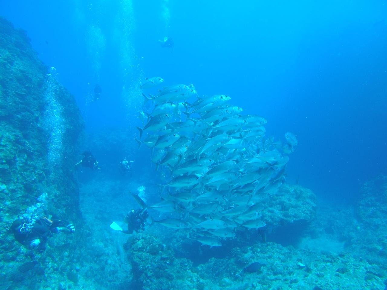 ギンガメアジやイソマグロが集結し、大物天国となる梅雨明けの粟国島。