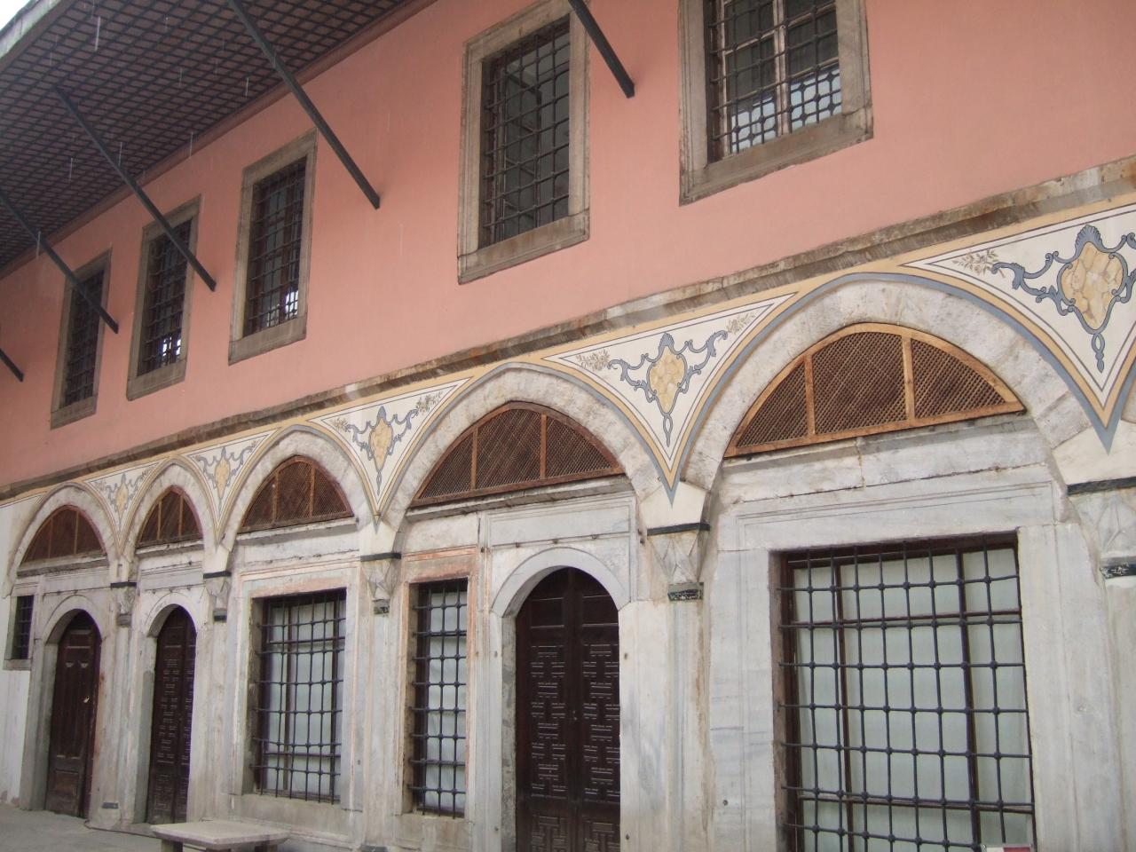 肝心のお庭が写ってませんが、ここ中庭だけがハレムの女性たちが外気を浴びることを許された場所でした。窓につけられた格子、華やかさの裏に自由のない女性たちの悲しい生活ぶりが伺えます。 -