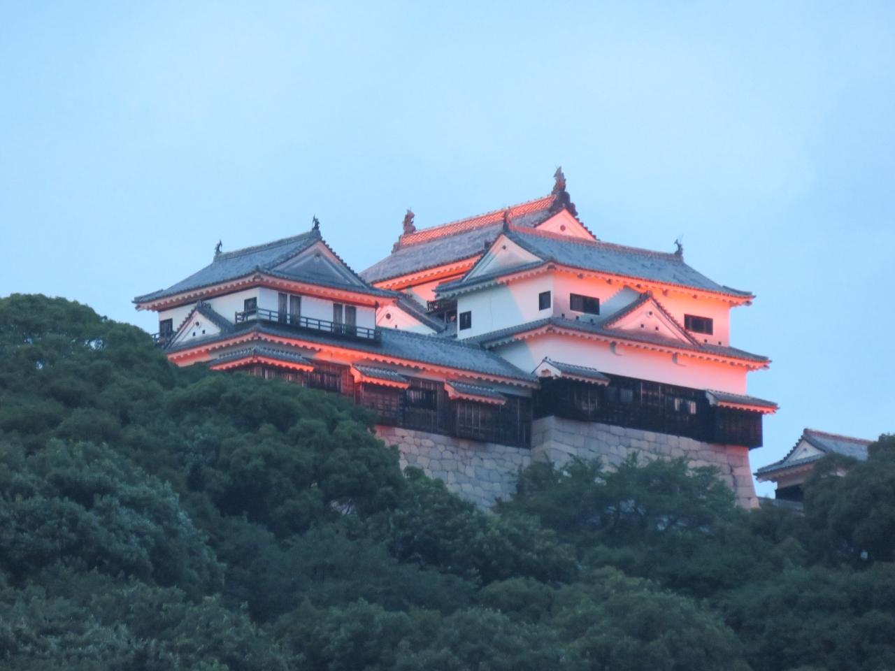 三の丸(堀の内)からみたライトアップされた松山城。