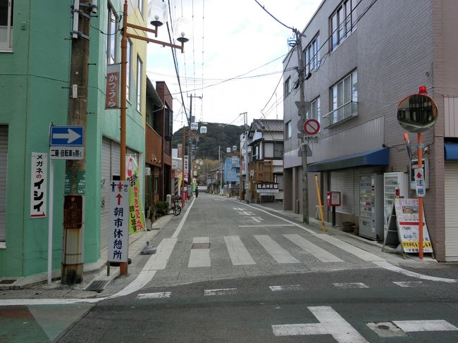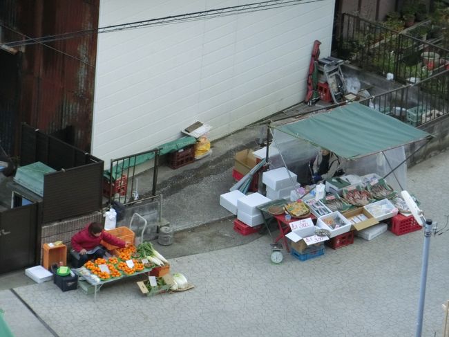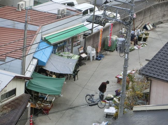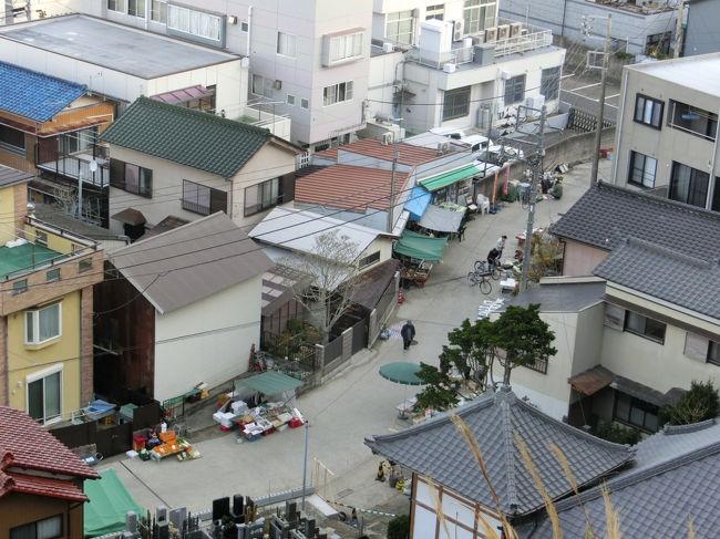 写真は「遠見岬神社」から見た「勝浦朝市」が行われている「下本町朝市通り」です。