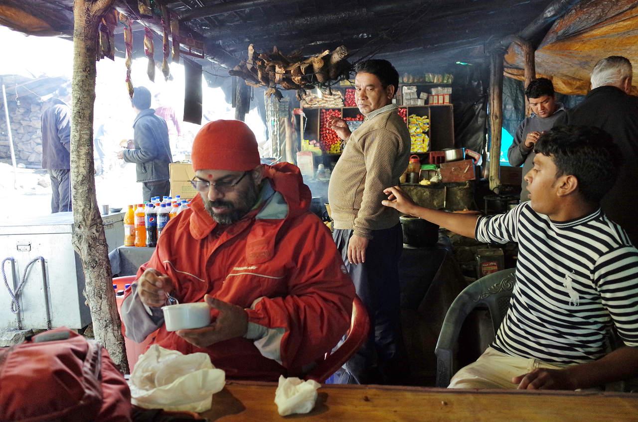 ガウリクンドは巡礼の基地となる村なので、ここに泊ることが出来たら、もっと華やかな雰囲気だっただろう。お湯が出るホテルもありそうだし。 -