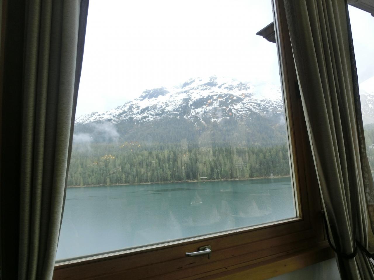 サン・モリッツ湖畔に立つわりと堂々としたホテルです。2泊します。