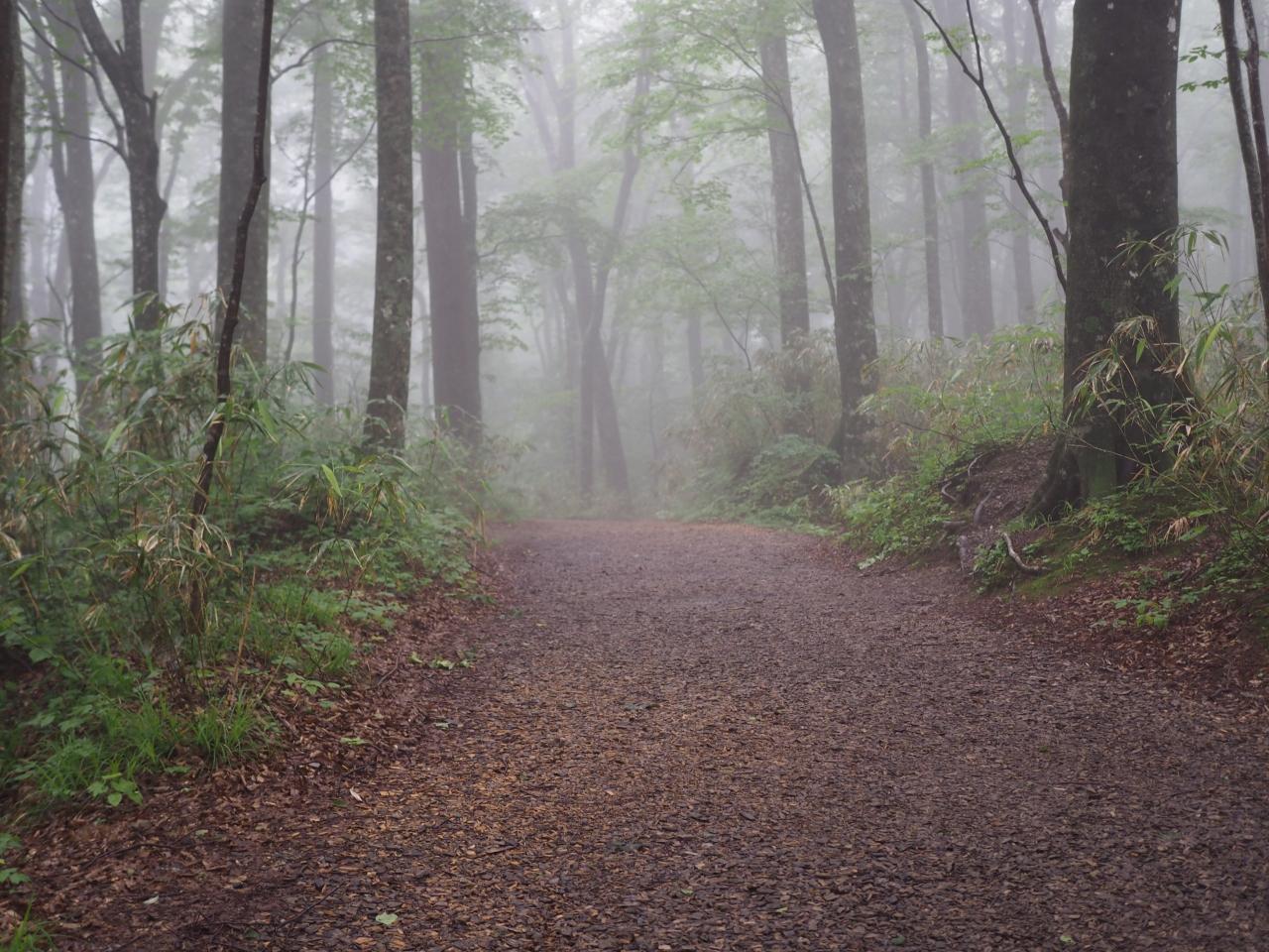 途中にも池があったけど、霧で何も見えず。。。