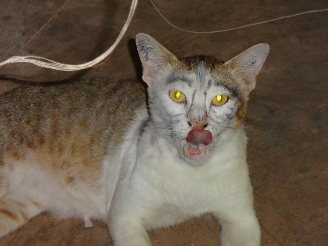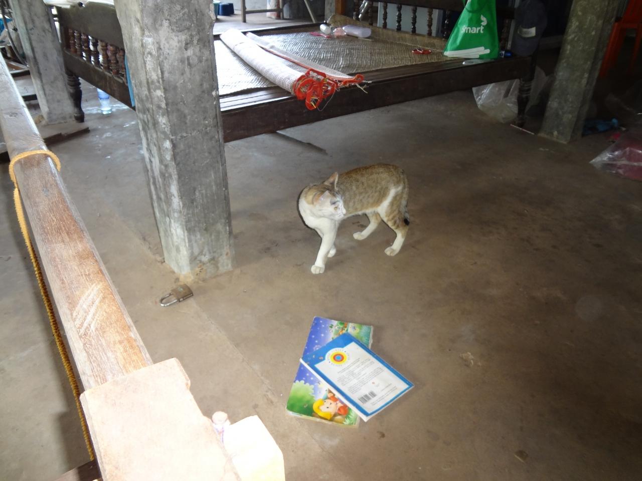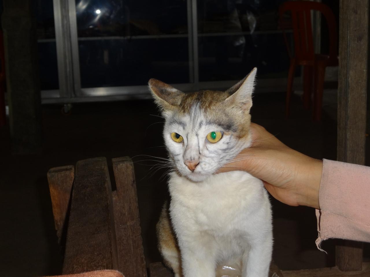 機織りのお姉さんがニャンコの顔を私の方に向けてくれました。