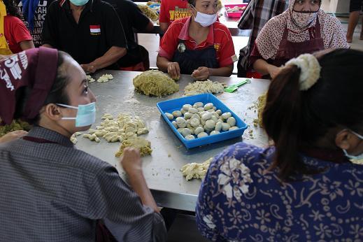 餡を皮に詰め込む作業です
