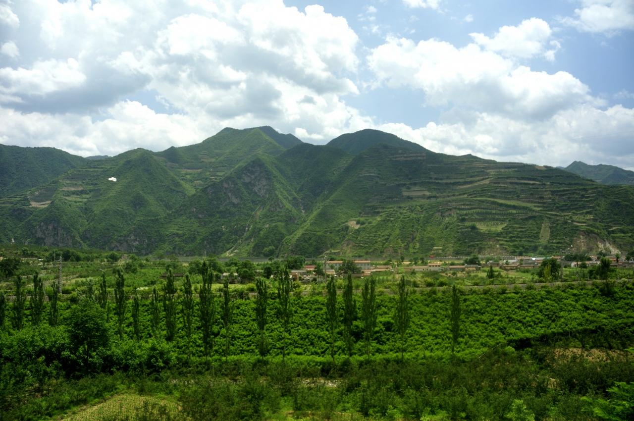 隴西を過ぎた辺りから緑が多くなって農村風景となった。 -