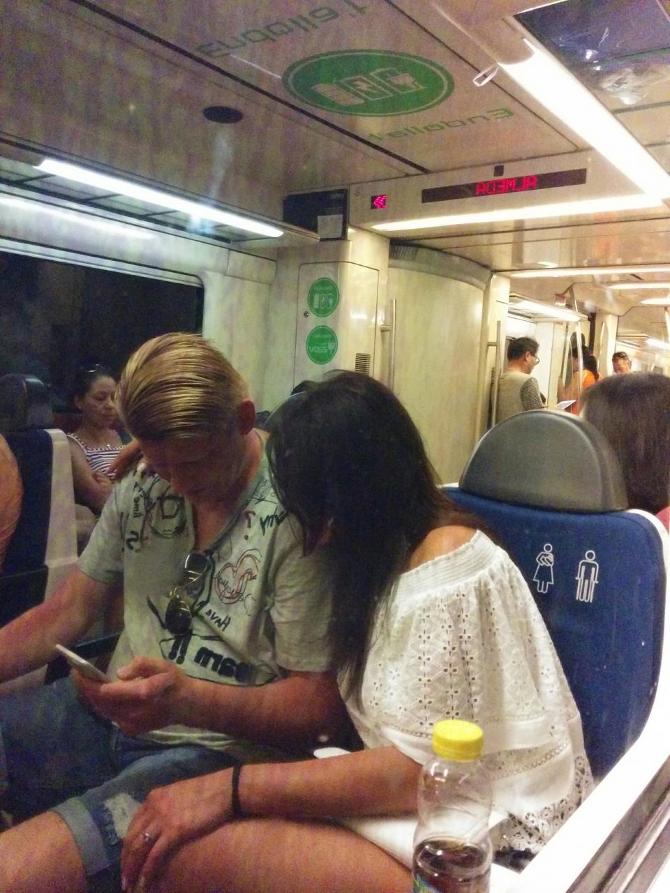 前の座席にはこのカップルが座っていた
