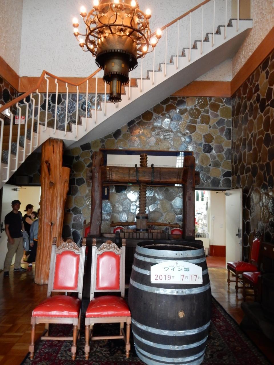 ワイン城は中世のお城を思わせる作りで、ワインの樽や豪華なシャンデリア、お土産屋さん、さらに4階にはバイキングのレストランがあります。