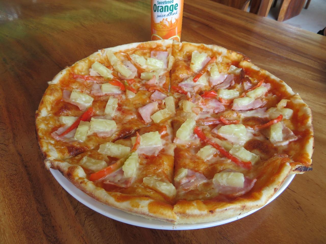 ベーコンやチーズに混ざって、パイナップルもトッピングされていました。