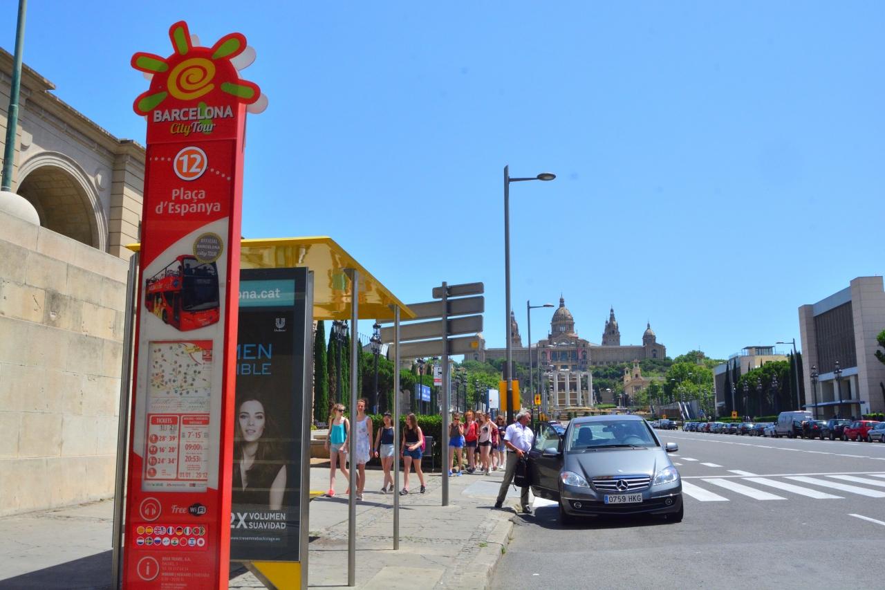 上の写真はスペイン広場のバス停、後ろに見えるのはカタルーニャ美術館スペイン広場 広場・公園