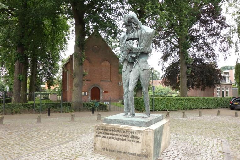 ゴッホ広場にはザッキン作「ゴッホ兄弟像」。弟のテオとの像です。奥には父が牧師を務めた教会。