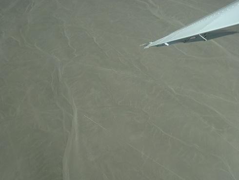 飛行場では、体重を測った後(体重に合わせて、席が決められる)、順番が来るまで2時間ほど待って、12人乗りのセスナ機に乗り込む。霧が出やすい季節なのに、とてもよく晴れていて、地上の景色がきれいに見えた。いよいよナスカの地上絵のある場所に来た。クジラに始まり、クモ、コンドル、サル、ハチドリなど、パイロットが翼を合わせて、「右、右、犬、犬、」というように日本語で教えてくれる。13の地上絵を残らず全部キャッチすることができた。宇宙人は山の方にいて、木と手は並んでいた。撮った写真を見直すと、オウム以外はあまりはっきりしないのだが、肉眼では、はっきりと見えた。こんなに見えるとは思っていなかったので、感動だった。