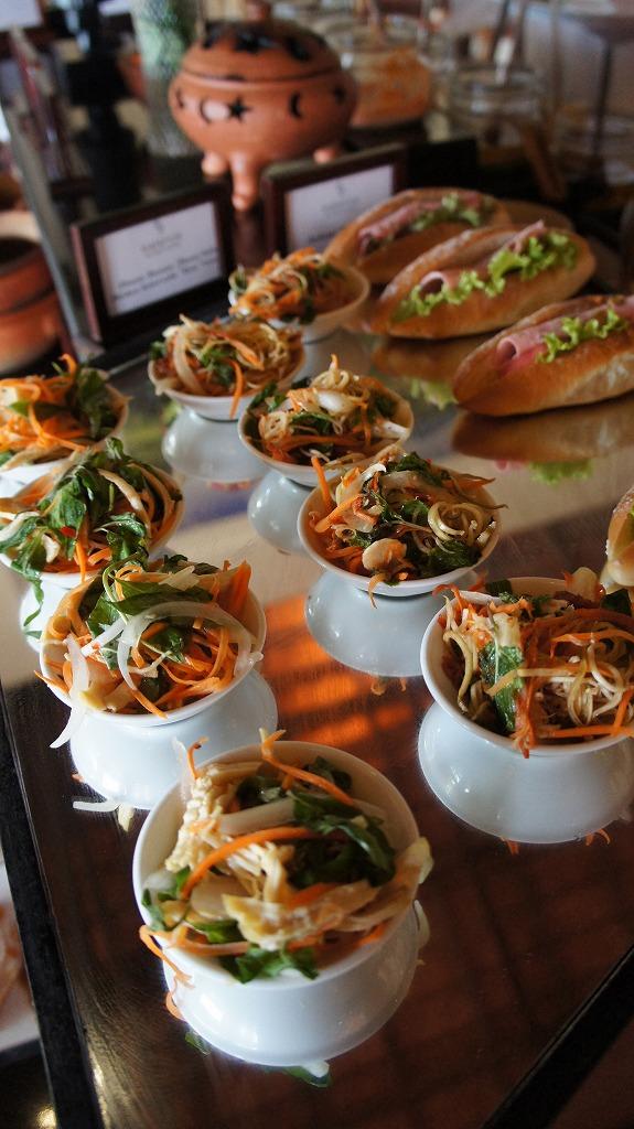 予約しておいたシーフードプレートのコースが始まりました。最初は青いパパイヤのサラダです。
