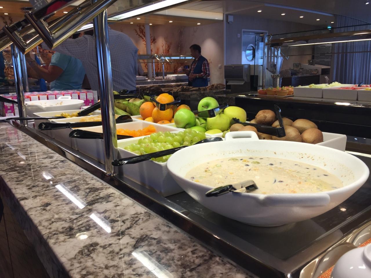 食事の後、ウィンジャマーカフェに比較に何回か行ったけど、メインダイニングの物が上にビュッフェ形式で普通に出てる、って事は無かった。これも一部の人が言ってたけどね、今回は当てはまらず。 -