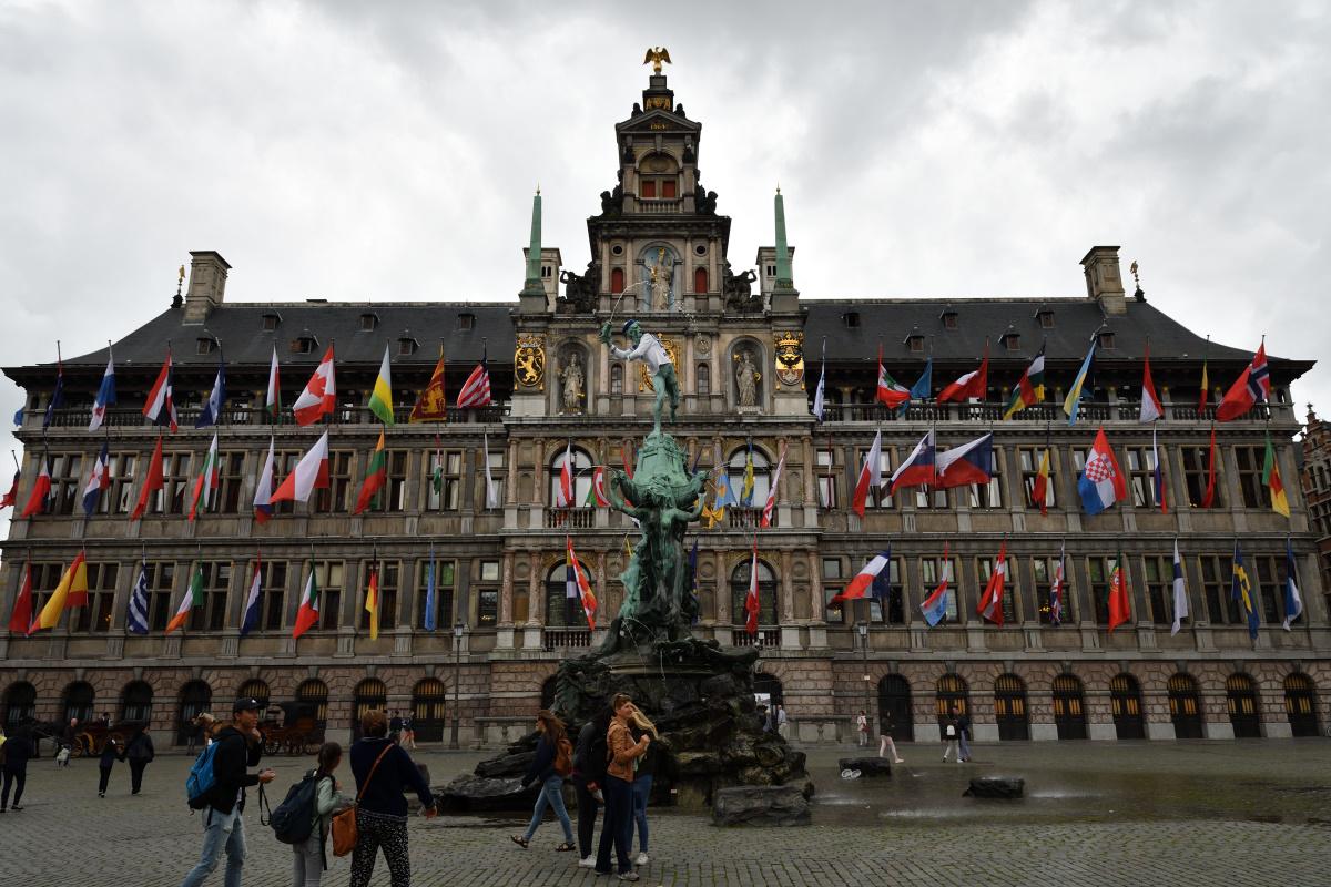 中央にはブラボーの噴水,後ろには市庁舎があります.マルクト広場 (アントワープ) 広場・公園