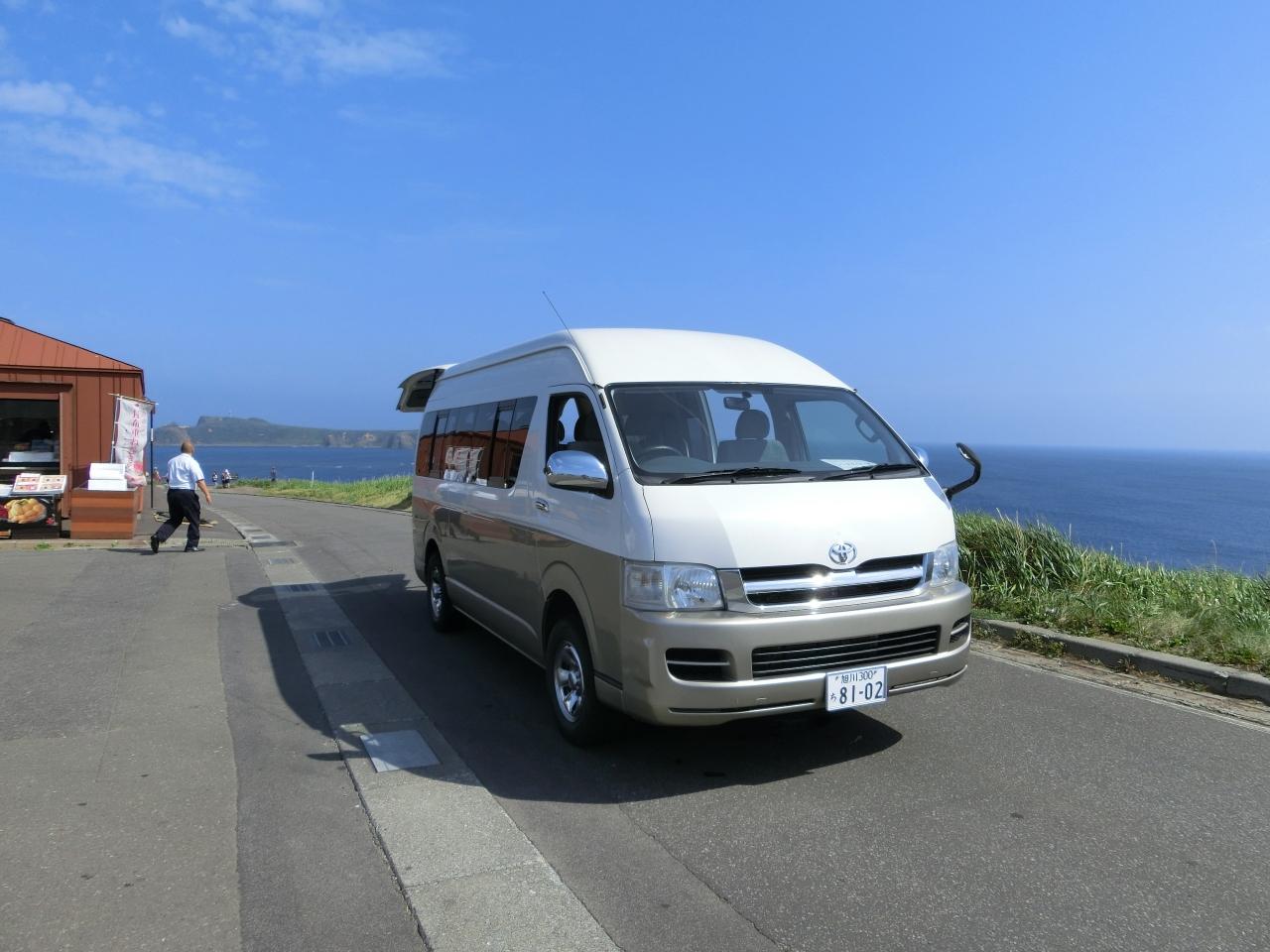 香深からはノースライナーというワゴンが迎えに来ており、スコトン岬まで送ってくれます。約30分の距離です。路線バスもあるのですが、宿泊者用の無料サービスで便利です。