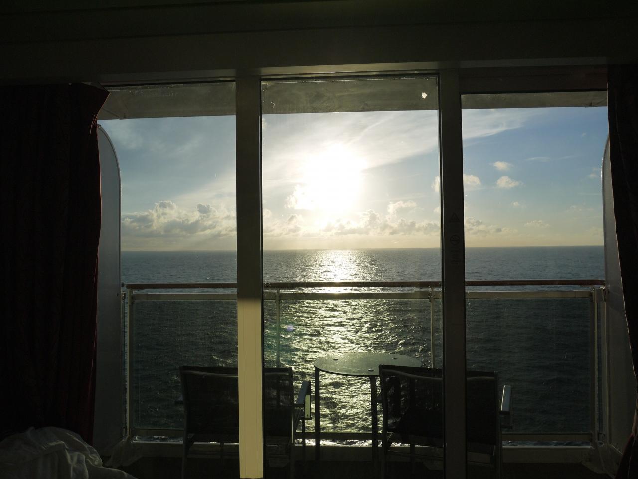 海から太陽が昇る。クルーズの醍醐味を味わう。