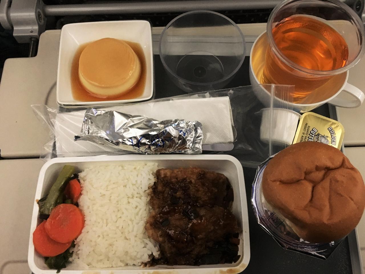 機内食も和食的な魚の煮つけや卵焼きなど。この辺りもそりゃ日系と比べれば落ちますが、海外エアの中ではなかなかレベル高いと思います。