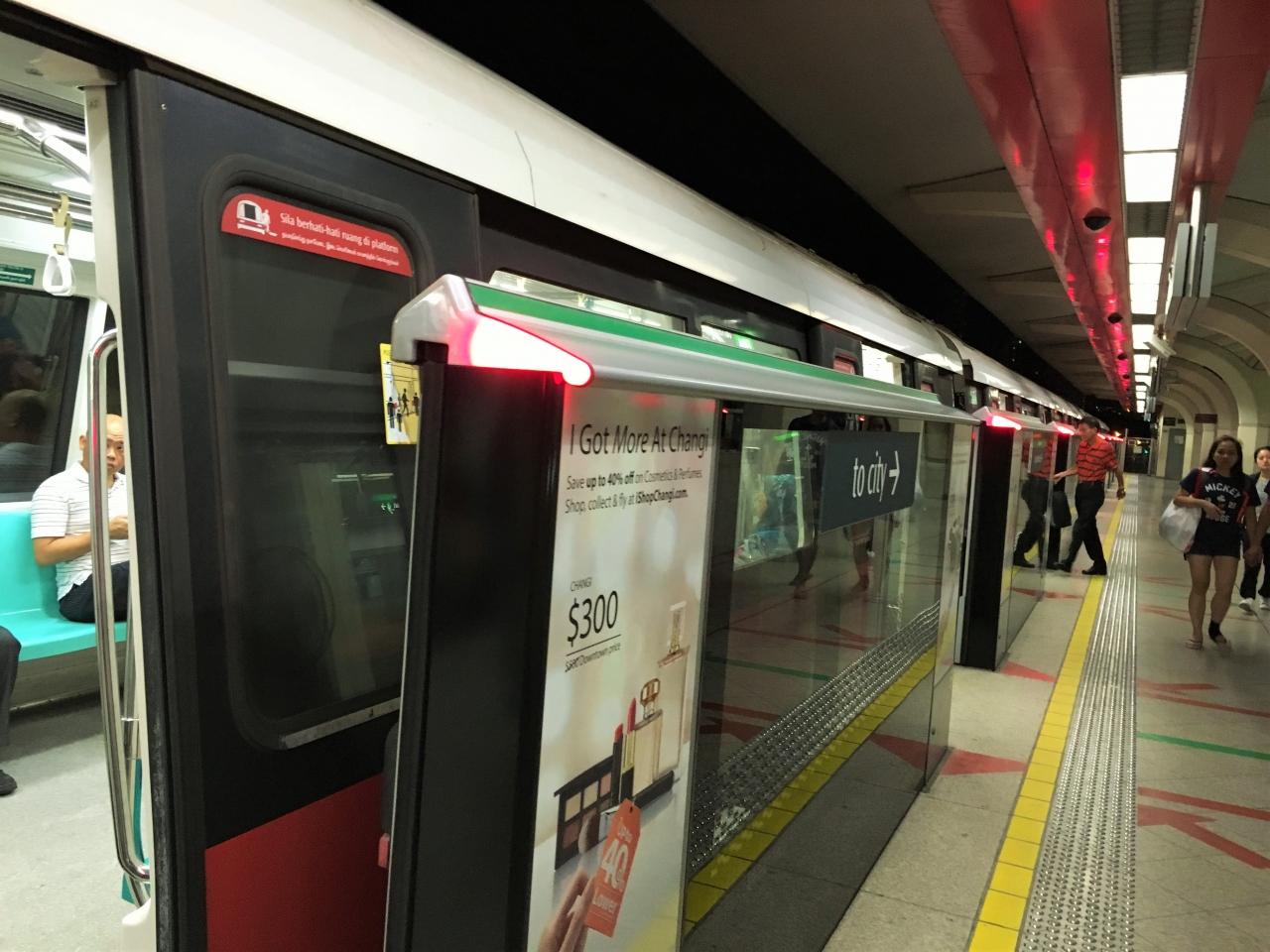 続いて空港から市内へと移動。空港バスやタクシーなども検討しましたが、時間の予測が取れ値段も安いMRTをチョイス。Tanah Merah駅で西行きに乗り換えて、30分弱で市内中心部へ。チャンギ エアポート駅 駅