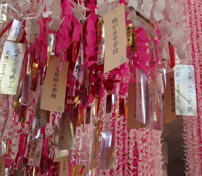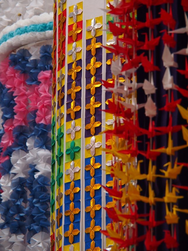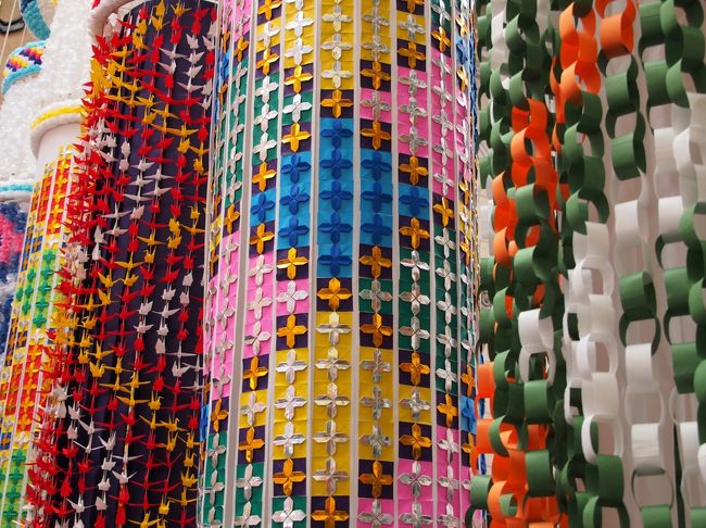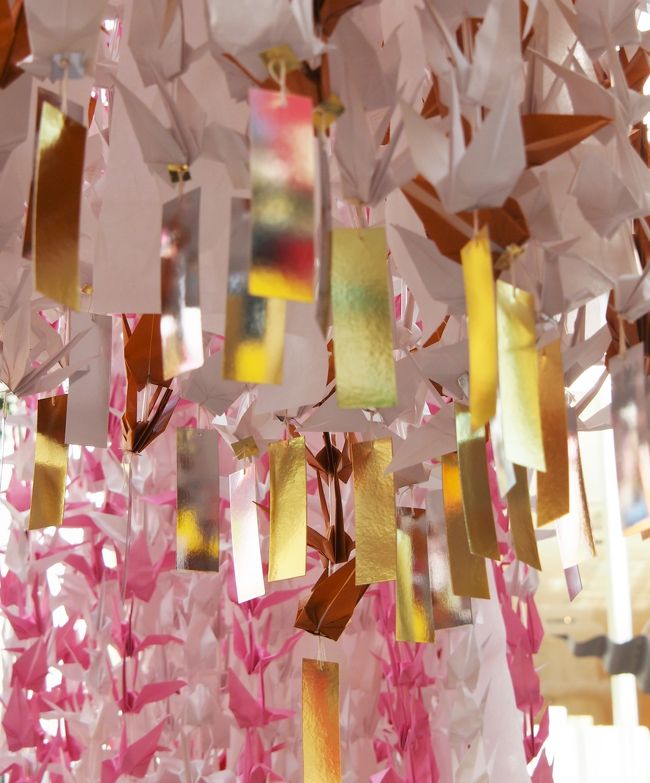 毎年、市内の小中学校の児童が折った8万羽余りの鶴で、大きな七夕飾りが作られ、ここに飾られます。