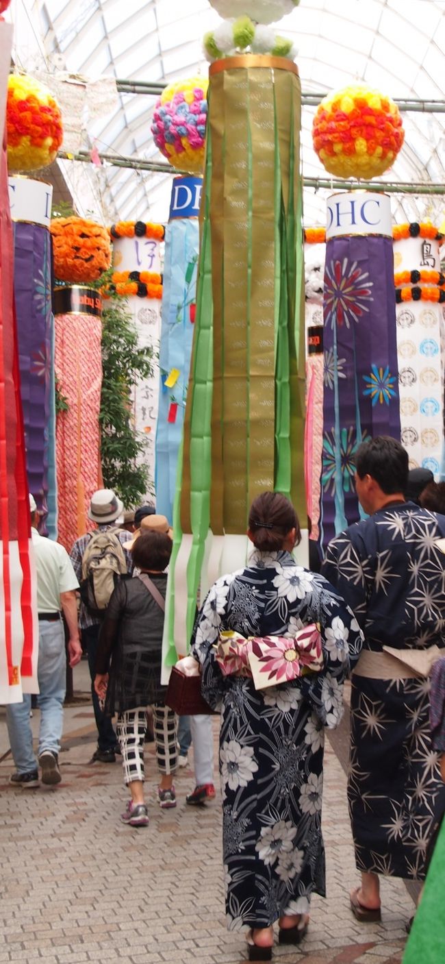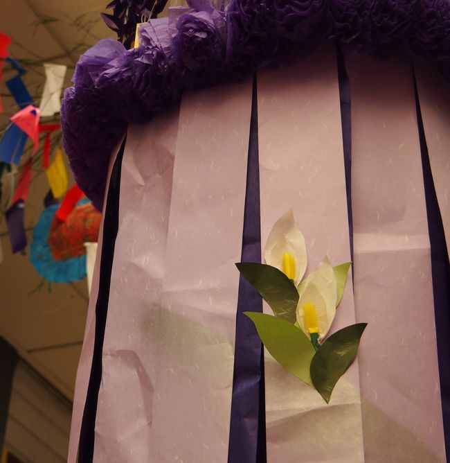 大きな吹き流しがお迎えしてくれて、七夕気分を盛り上げてくれます。 -
