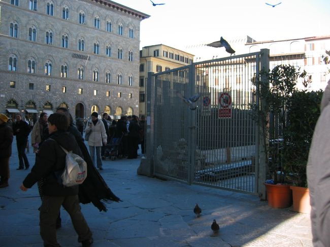 ウフィツィ美術館前の広場。天使の像は人です。予約してなかったので2時間ほど並びました。