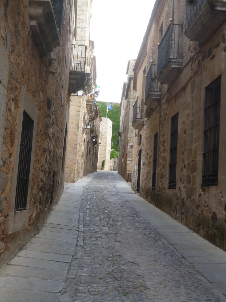 無骨な建物の一画から離れて中心広場へ。他の巡礼者も観光をしていたようで、トーベさん、イタリアのお父さんとばったり出会いました。町のへそだから、皆が集まってくる。トーベさんはもう少し観光してからカサールへ、お父さんはこのままカセレスに泊まるという。